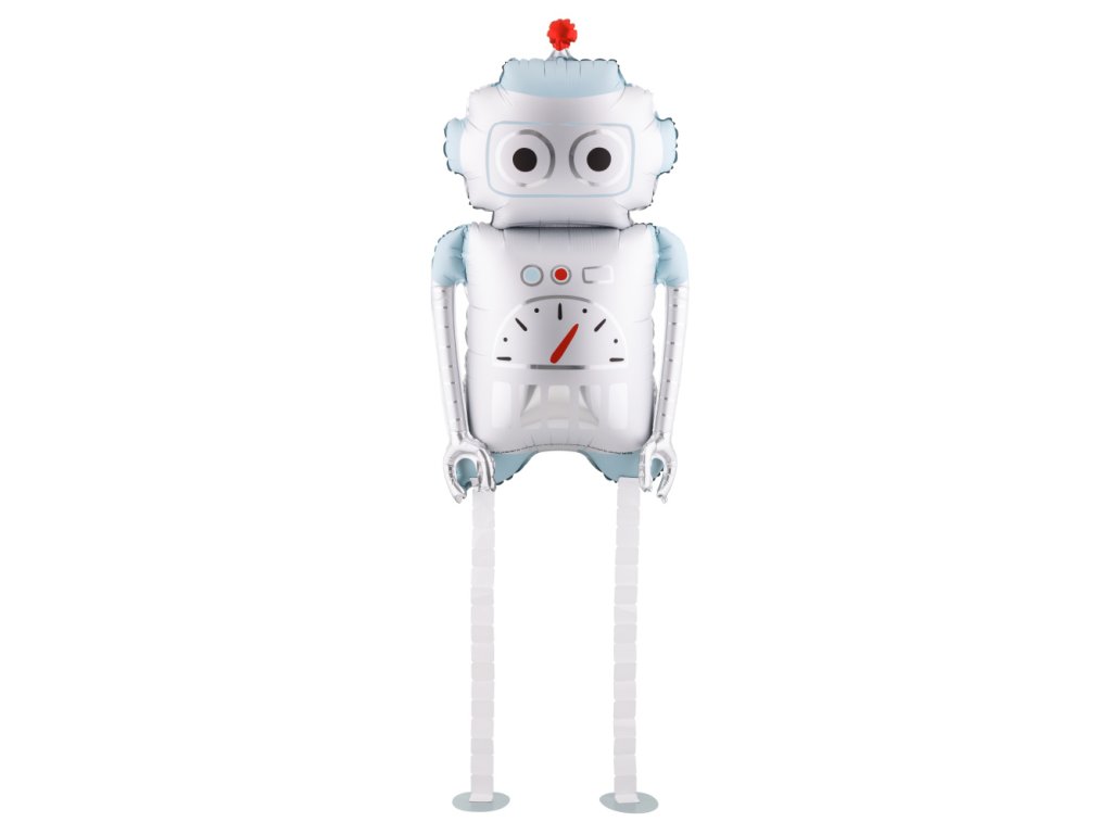 Chodící nafukovací robot je originální dárek nejen pro děti. Tento balónek je určený pro nafukování heliem, které jej nadnáší a papírové nožičky naopak fungují jako zátěž. Postavička tedy nevzlétne, ale bude stát pevně nohama na zemi a následovat Vás jako věrný přítel. Balónek můžete nafouknout s pomocí helia pro domácí použití nebo se zastavte na naší prodejně v Berouně, kde Vám jej rádi nafoukneme na počkání.