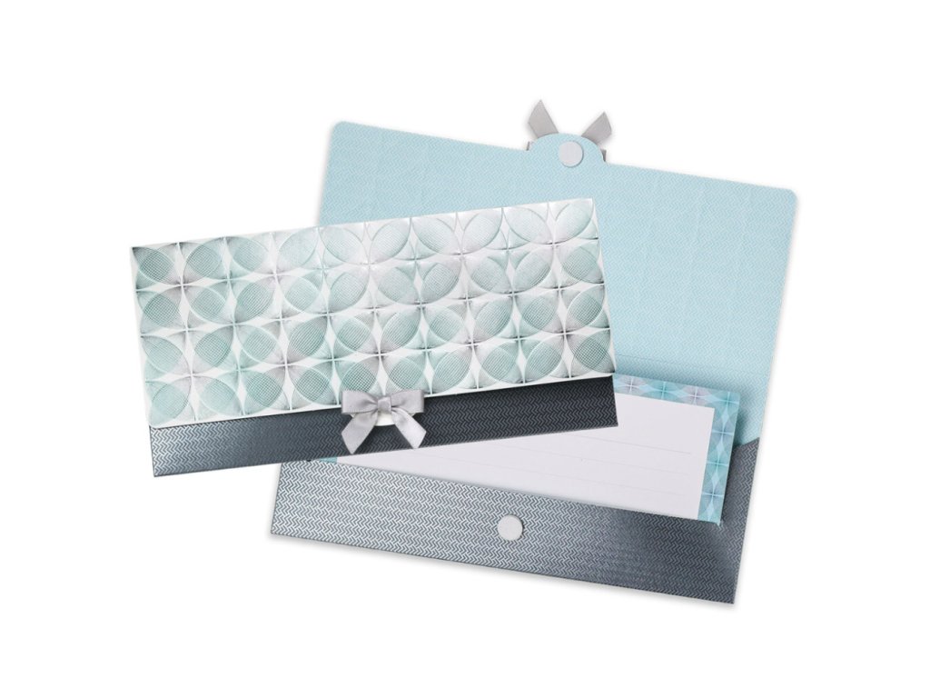 Obálka je vyrobena s důrazem na detail - je zdobena reliéfní strukturou s jemným 3D efektem a doplněná metalickou ražbou, která jí dodává luxusní vzhled. Praktické samolepicí uzavírání zajistí bezpečné uzavření. Součástí je také karta na věnování, na kterou můžete přidat pár slov navíc. Jednoduchý a elegantní způsob, jak darovat peníze stylově.