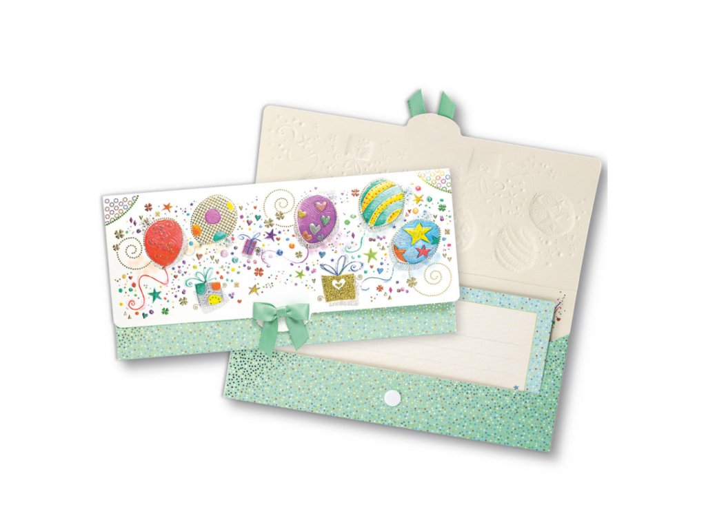 Obálka je vyrobena s důrazem na detail - je zdobena reliéfní strukturou s jemným 3D efektem a doplněná metalickou ražbou, která jí dodává luxusní vzhled. Praktické samolepicí uzavírání zajistí bezpečné uzavření. Součástí je také karta na věnování, na kterou můžete přidat pár slov navíc. Jednoduchý a elegantní způsob, jak darovat peníze stylově.