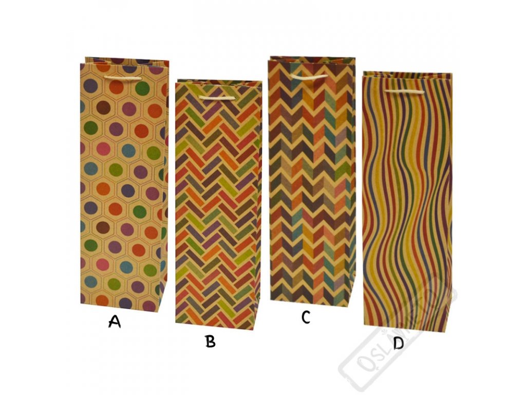 Dárková taška na víno Kraft Dekor mix