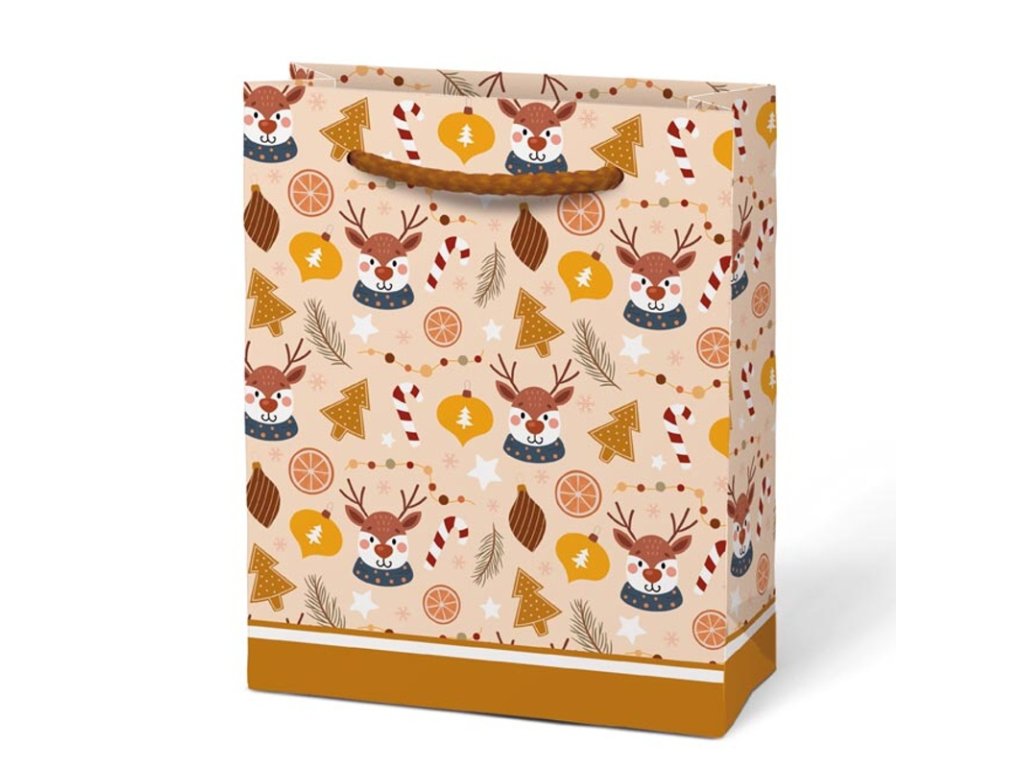 Něco dostat je skvělá věc - a když je to něco ještě ke všemu hezky zabalené, pak je to vyloženě fantazie. Nemáte čas balit dárek do balícího papíru nebo si nejste jisti svým balícím umem? Tak právě pro Vás máme tyto krásné vánoční tašky, se kterými to budete mít bez práce. Taška je opatřena pevnými uchy pro snadné nošení a v nabídce je máme ve čtyřech různých designech. Pokud si přejete konkrétní motiv, napište prosím do poznámky v objednávce jeho označení a/b/c/d. Uvedená cena je za jeden kousek o velikosti 11 x 13,5cm.