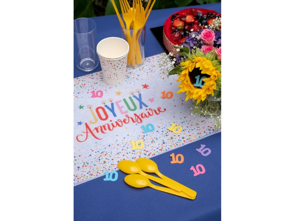 Perfektní výzdoba pro oslavu kulatých desátých narozenin! Zasypejte stůl těmito pestrobarevnými konfetkami s čísly 10 pro patřičně slavnostní vzhled. Konfety mohou posloužit také jako drobná dekorace, kterou nalepíte třeba na narozeninové pozvánky nebo jmenovky. V jednom balíčku na Vás čeká 25 kusů konfet v barevném mixu, což s přehledem vystačí na výzdobu velkého stolu. Jedno číslo 10 má rozměr 2,5 x 2,5cm.