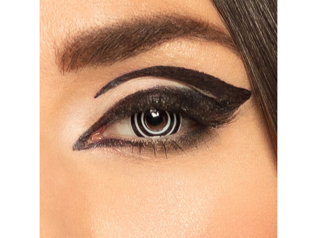 Módní barevné kontaktní čočky s efektem. Temně černý pohled hypnotizující bílou spirálou, před kterým není úniku!