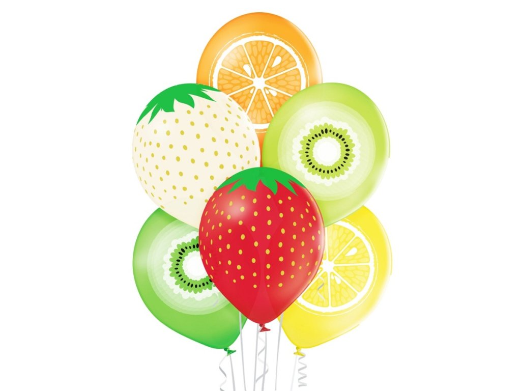 Nafoukněte si balónek! Latexové balónky s ovocem snadno nafouknete ústy až do velikosti 30cm. Použít můžete také pumpičku na balónky nebo kompresor. Balónky naplněné vzduchem nejlépe připevníte do prostoru pomocí gelových oboustranně lepicích koleček. Rychle tak ozdobíte opěrky židlí, police a další hladké povrchy. Další variantou je navázání balónku na speciální balónkovou tyčku či klasickou stuhu. Tyto latexové balónky jsou vhodné také pro plnění heliem - pak se budou efektně vznášet nad Vašimi hlavami. Balónková výzdoba na správnou party rozhodně patří a neměla by chybět ani na narozeninové oslavě! Tyto prémiové balónky s celoplošným potiskem jsou vyrobeny z kvalitního, 100% přírodního latexu a v jednom balení netrpělivě čeká na nafouknutí 6 kousků.