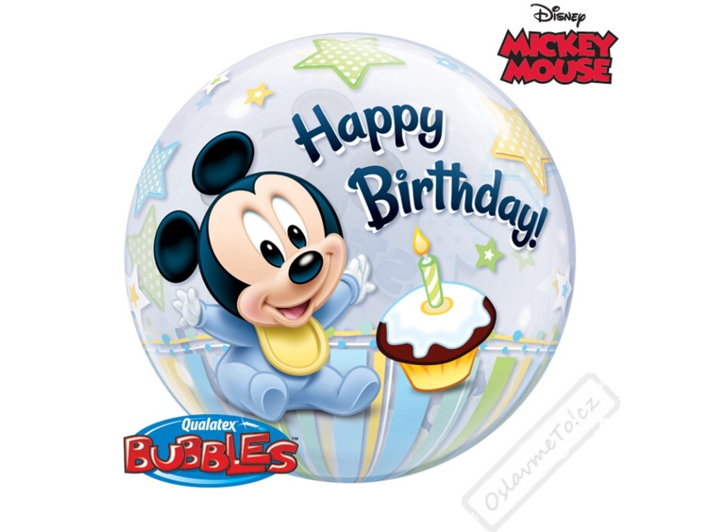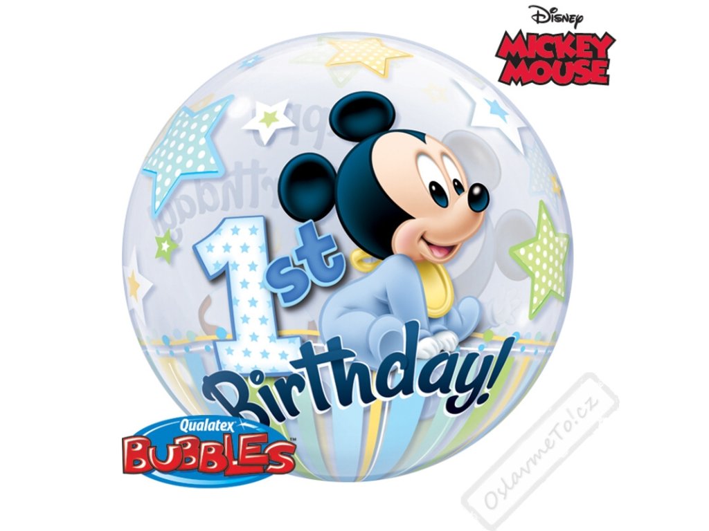 Nafukovací balón bublina Mickey 1 rok 56cm