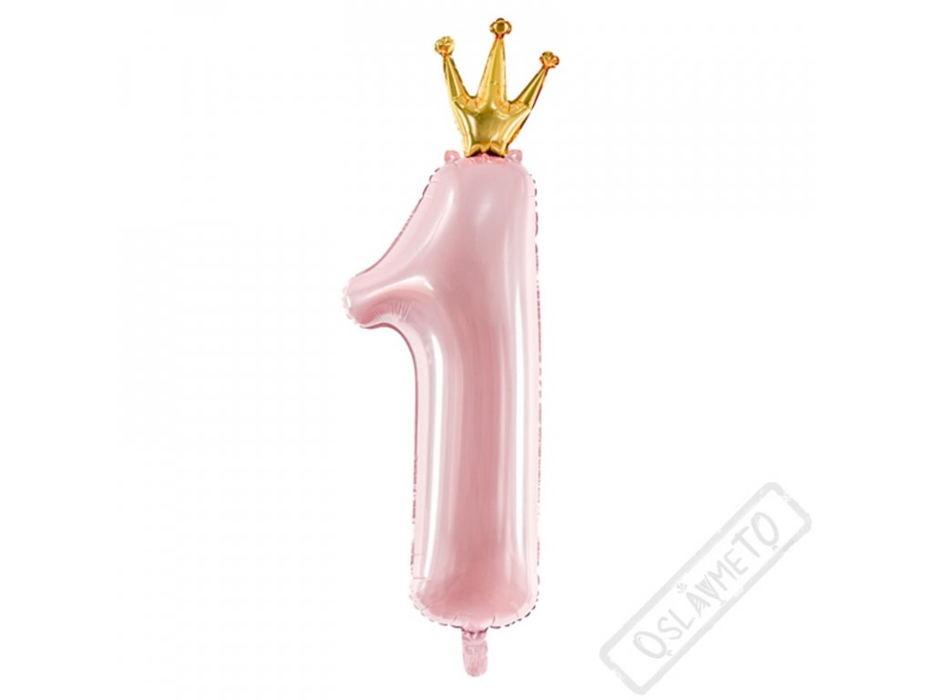 Nafukovací balón číslo 1 s korunkou růžový 90cm