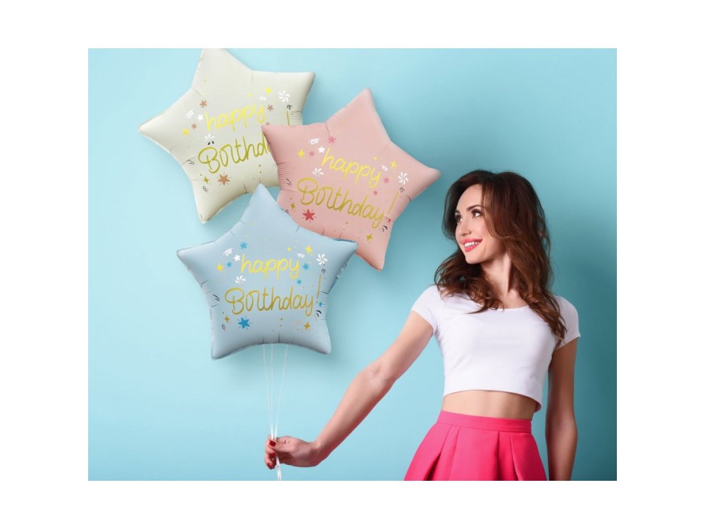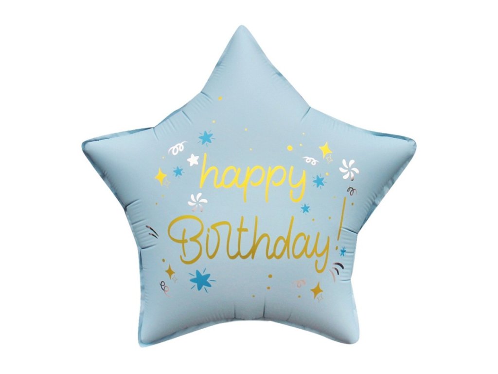 Narozeninová party a balónky patří neodmyslitelně k sobě! Tento balónek je vyroben z matné fólie, je vhodný pro plnění vzduchem i heliem a dá se opakovaně dofukovat. Oboustranný potisk a nápis Happy Birthday zaručeně potěší oslavence i jeho hosty. Balónek je vybaven bezpečnostní pojistkou - budete-li jej nafukovat vzduchem, použijte brčko nebo pumpičku na balónky. Při naplnění heliem vydrží fóliové balónky létat 4-10 dní v závislosti na jejich velikosti a okolních podmínkách. V balení na Vás čeká 1 balónek ve tvaru hvězdy s průměrem 46cm. Perfektní výzdoba na narozeninovou oslavu i originální dárek!