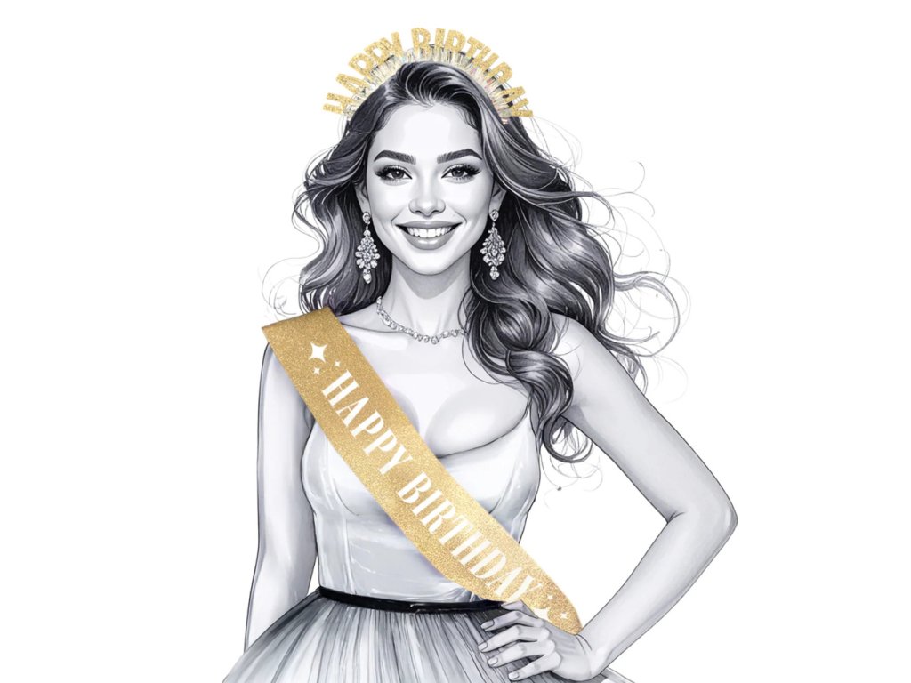 Tradiční narozeninová šerpa a korunka s nápisem HAPPY BIRTHDAY nesmí chybět žádnému oslavenci! Uspořádejte párty, dolaďte doplňky a vzhůru do víru zábavy. Třpytivě zlatou šerpu jednoduše hoďte přes rameno a v dolní části upevněte přiloženým svíracím špedíkem. Na hlavu nasaďte čelenku zdobenou třásněmi a nápisem HAPPY BIRTHDAY užijte si oslavu!