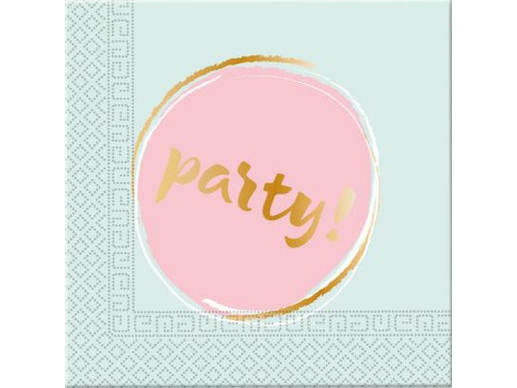 Tématické papírové party ubrousky je určitě dobré mít vždy po ruce. Naaranžované na slavnostní tabuli vypadají skvěle, můžete do nich zavinout sendviče, tortilly a další lahůdky a v případě potřeby s nimi setřete vše, co je setřít třeba. Tyto ubrousky v pastelových barvách s nápisem "Party" určitě nezapomeňte přibalit tam, kde se chystá stylová oslava narozenin nebo třeba silvestrovský večírek! V jednom balení je naskládáno 20 dvouvrstvých ubrousků o velikosti 33 x 33cm.
