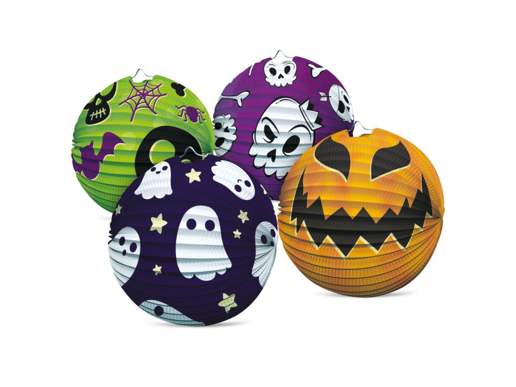 Papírové lampiony jsou oblíbenou dekorací narozeninových oslav a nutnou výbavou na lampionový průvod! Tyto barevné lampiony mají průměr 25cm, jsou vybaveny poutkem pro snadné zavěšení a kovovým držáčkem na svíčku. Lampion je vhodný na LED světýlka i klasickou lampionovou svíčku z vosku. Velkou parádu však nadělá i bez osvětlení - jen tak zavěšený v prostoru nebo ležérně naaranžovaný na stole. Mix 4 strašidelných motivů, dodáváme dle aktuálních skladových zásob, uvedená cena je za jeden kousek.