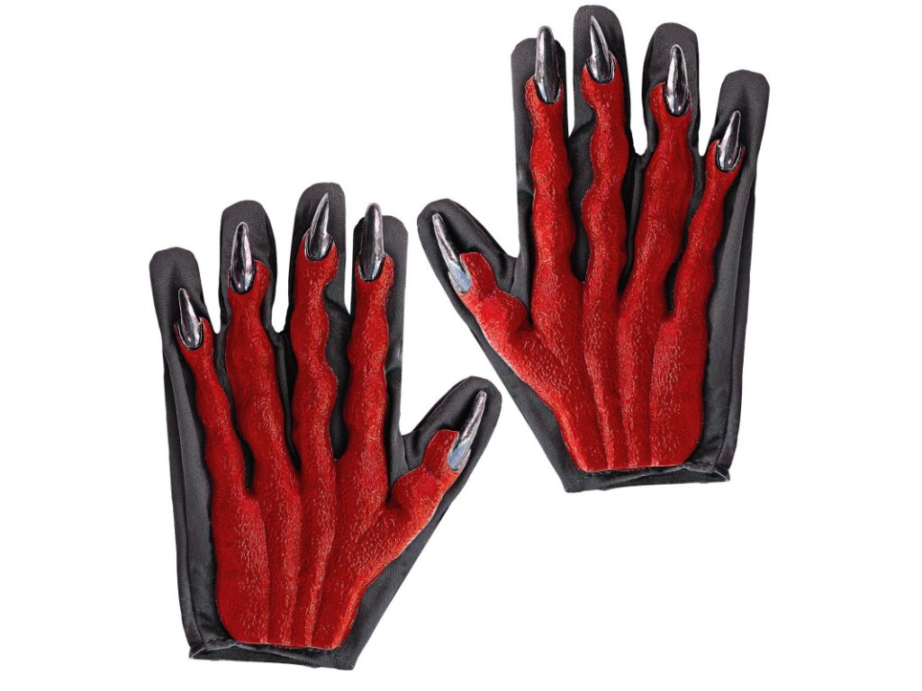 - s 3D aplikací čertovské ruky s černými drápy