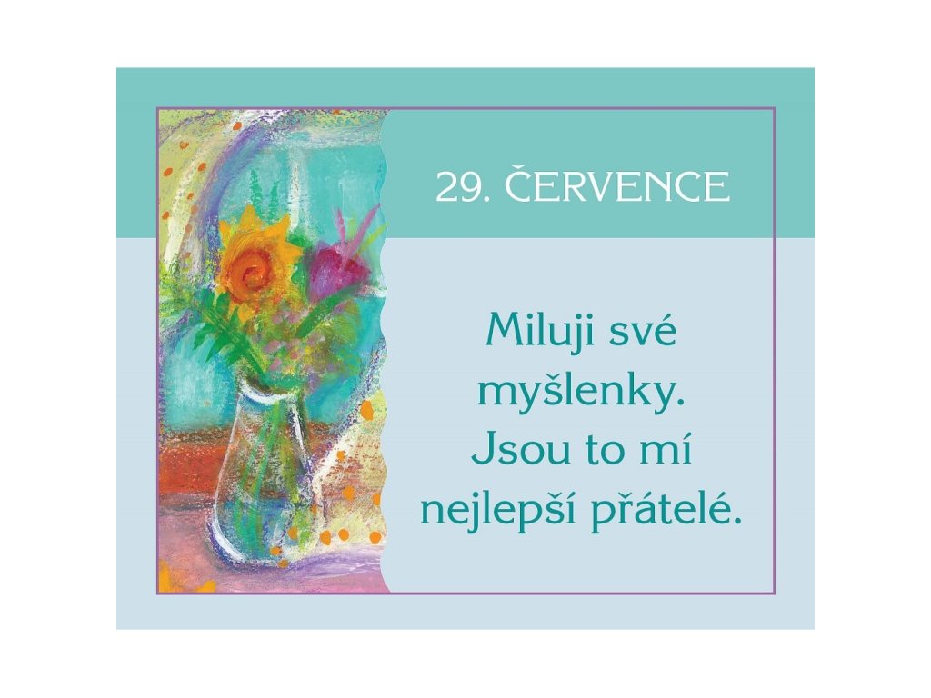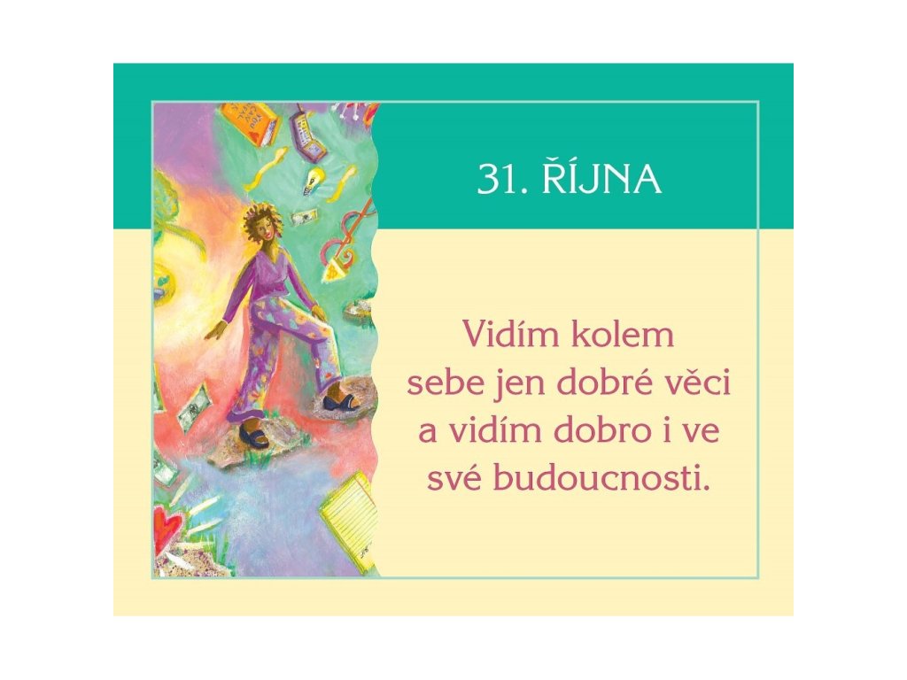 Louise L. Hay, světově uznávaná autorka knihy Miluj svůj život, pro vás vytvořila kalendář se silnými afirmacemi, který můžete používat každý den, rok co rok. Afirmace jsou zaměřeny na základní oblasti našeho života - milostné vztahy, zdraví, odpuštění, tvořivost, zvládání stresu, bohatství, úspěch a spokojenost v zaměstnání. Tyto afirmace vám dodají vnitřní sílu a lehkost při prožívání každodenních situací. Navíc jsou doplněny půvabnými ilustracemi malířky Joan Perrin-Falquet, která často s Louise L. Hay a jinými duchovními učiteli spolupracuje. Její obrázky jsou plné životní energie, která je pro nás tolik potřebná.