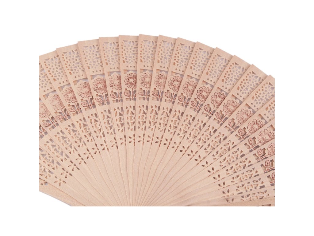 Vějíř z bambusového dřeva zaujme svými vyřezávanými ornamenty i nízkou hmotností. Využijete jej na společenské události, svatby, karnevaly i různá taneční vystoupení. Vějíř se může stát elegantním doplňkem pro večerní procházky nebo dovolenou v exotických destinacích. Je nejen módním doplňkem, ale i praktickým pomocníkem v horkých letních dnech. Přinese Vám příjemné osvěžení a zvýrazní Váš osobní styl. Bambusový vějíř je ideální také k aranžování nebo domalování, kdy si jej můžete směle dotvořit, dle vlastního vkusu.